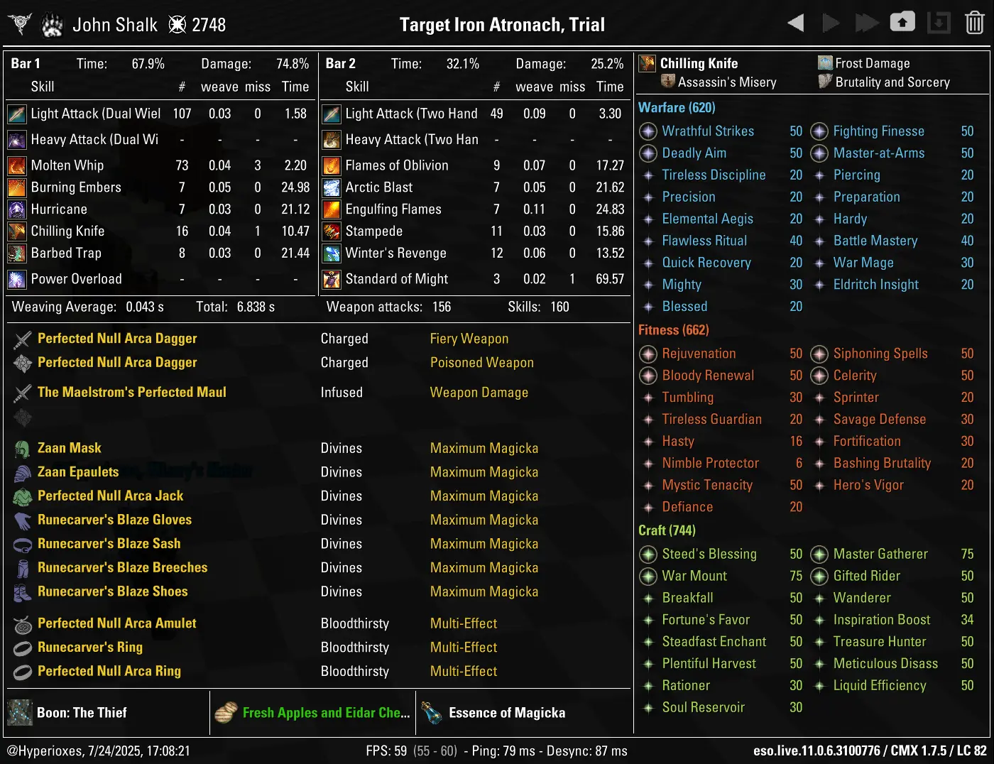This build also provides group support at all times, it increases everyone’s chance to inflict Status Effects by 100% thanks to the Status Knife and it increases enemies’ Flame damage taken by 6%. I will also include a gear setup using Alkosh and Zen’s Redress, if you want to fulfill the Zenkosh support role.