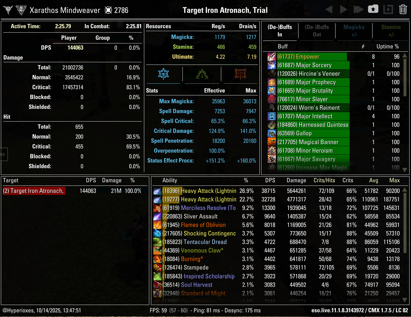 Combat Metrics screenshot of the 144k parse (Ardent Flame)