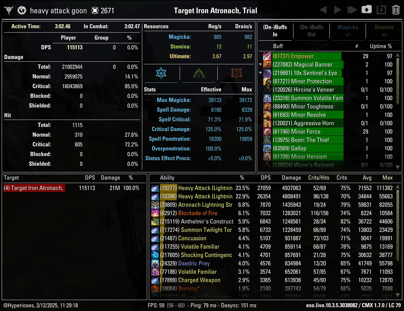 Combat Metrics screenshot of the 115k parse