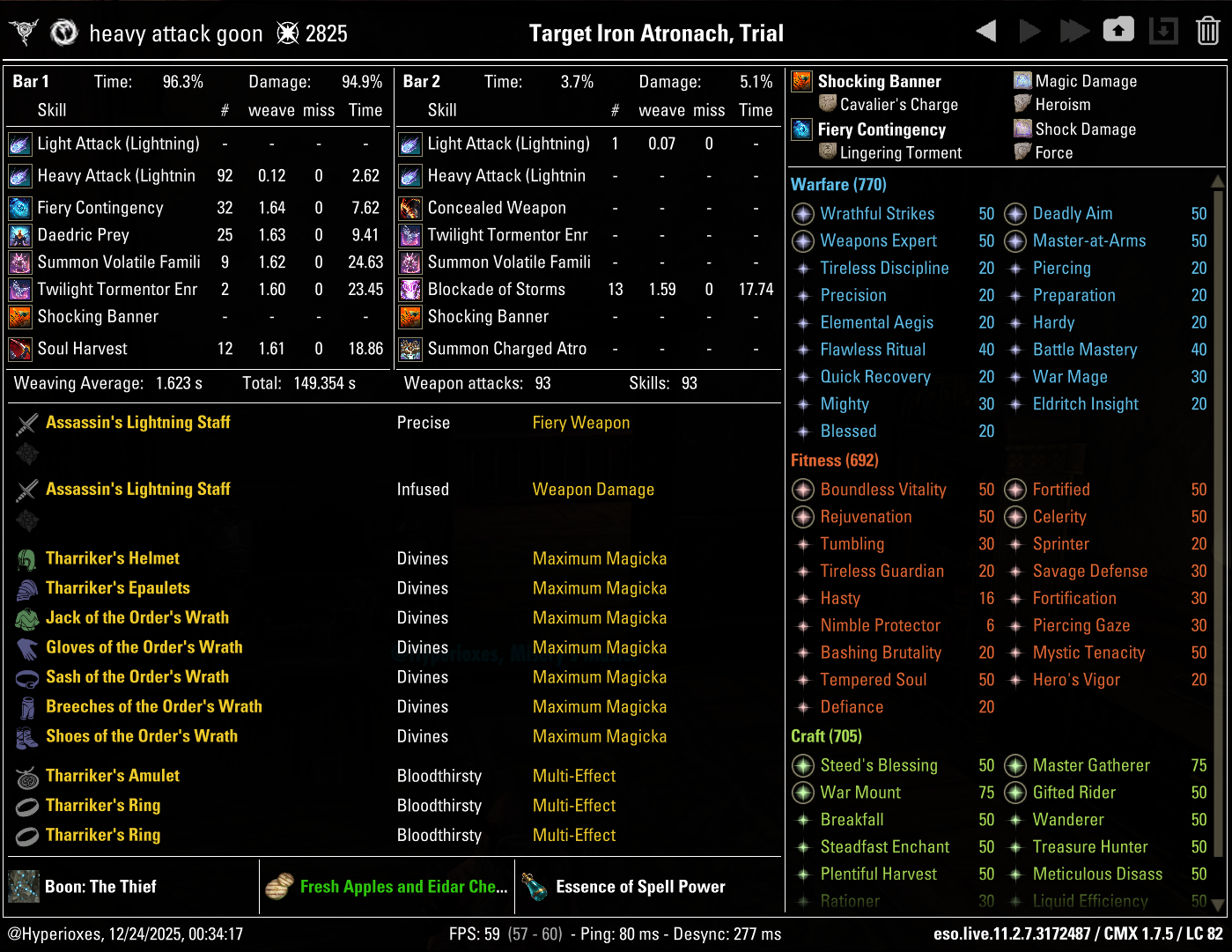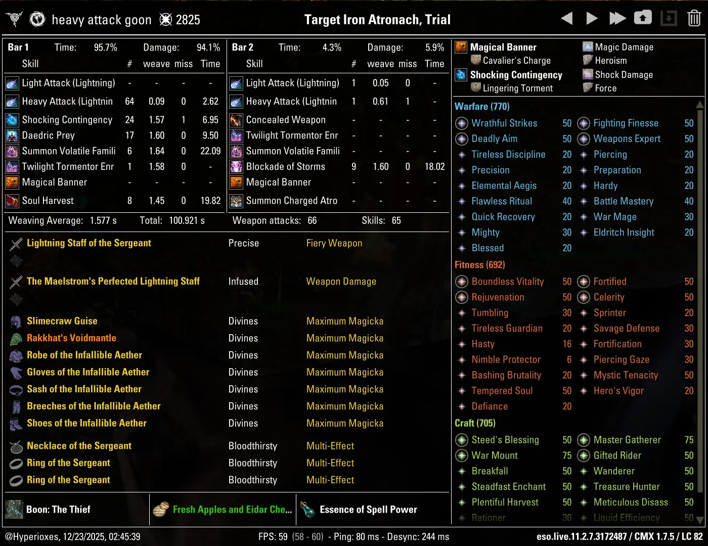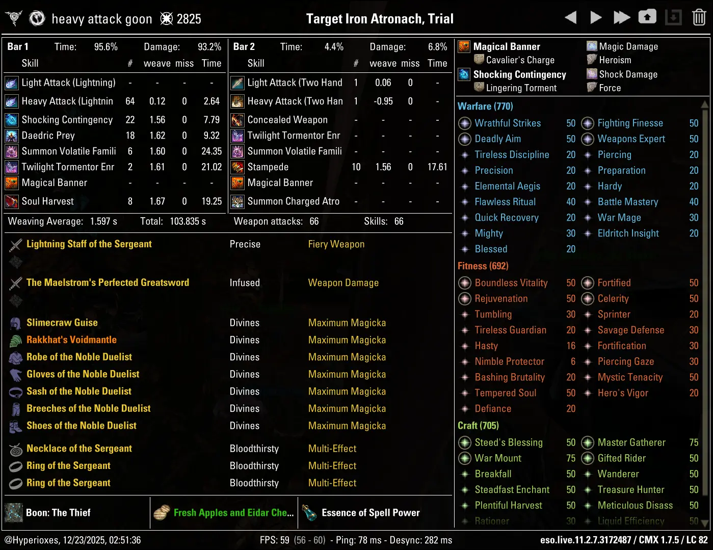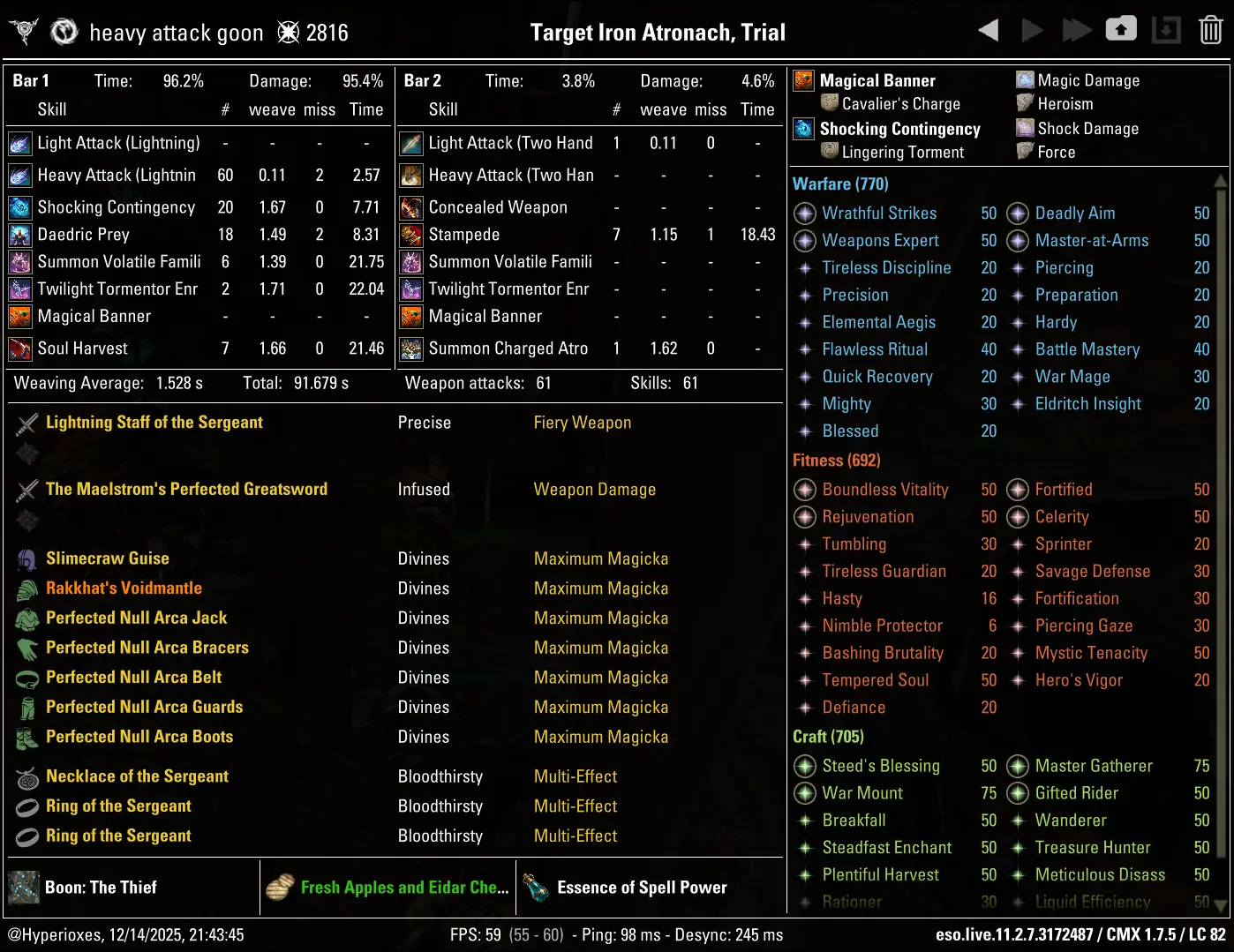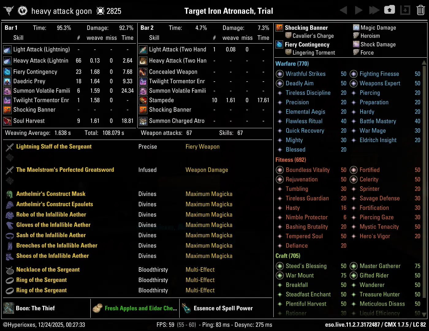 The crafted setup parses 86.5k DPS, although a huge majority of this DPS loss stems from lack of