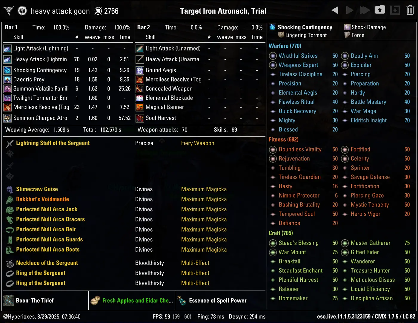 The crafted setup parses 80.6k DPS, although a huge majority of this DPS loss stems from lack of