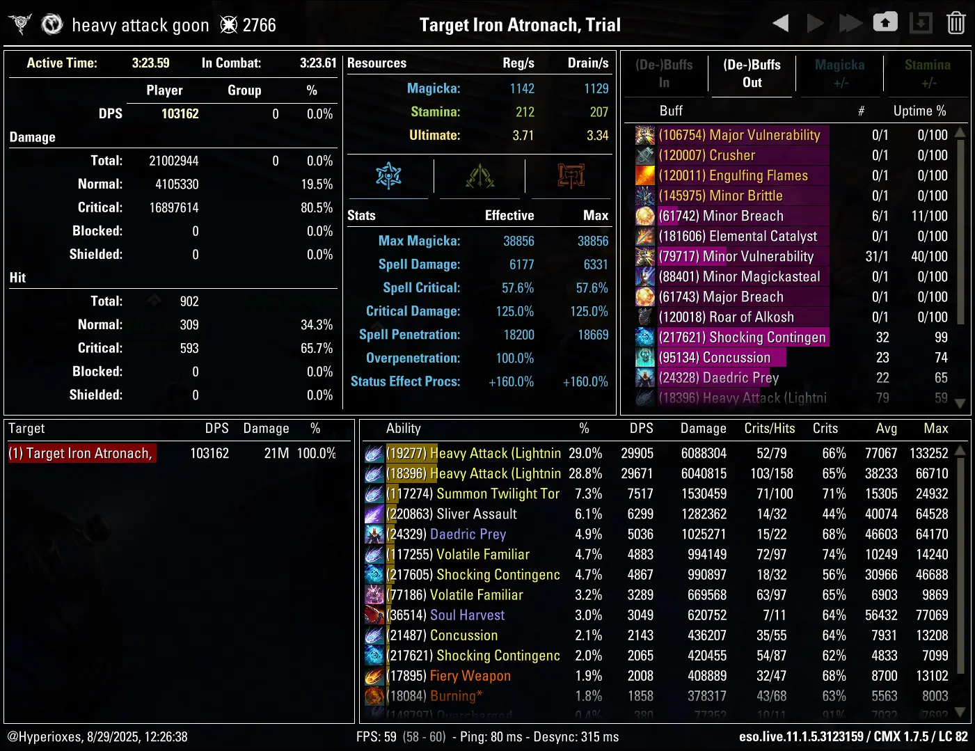 Combat Metrics screenshot of the 120.5k parse