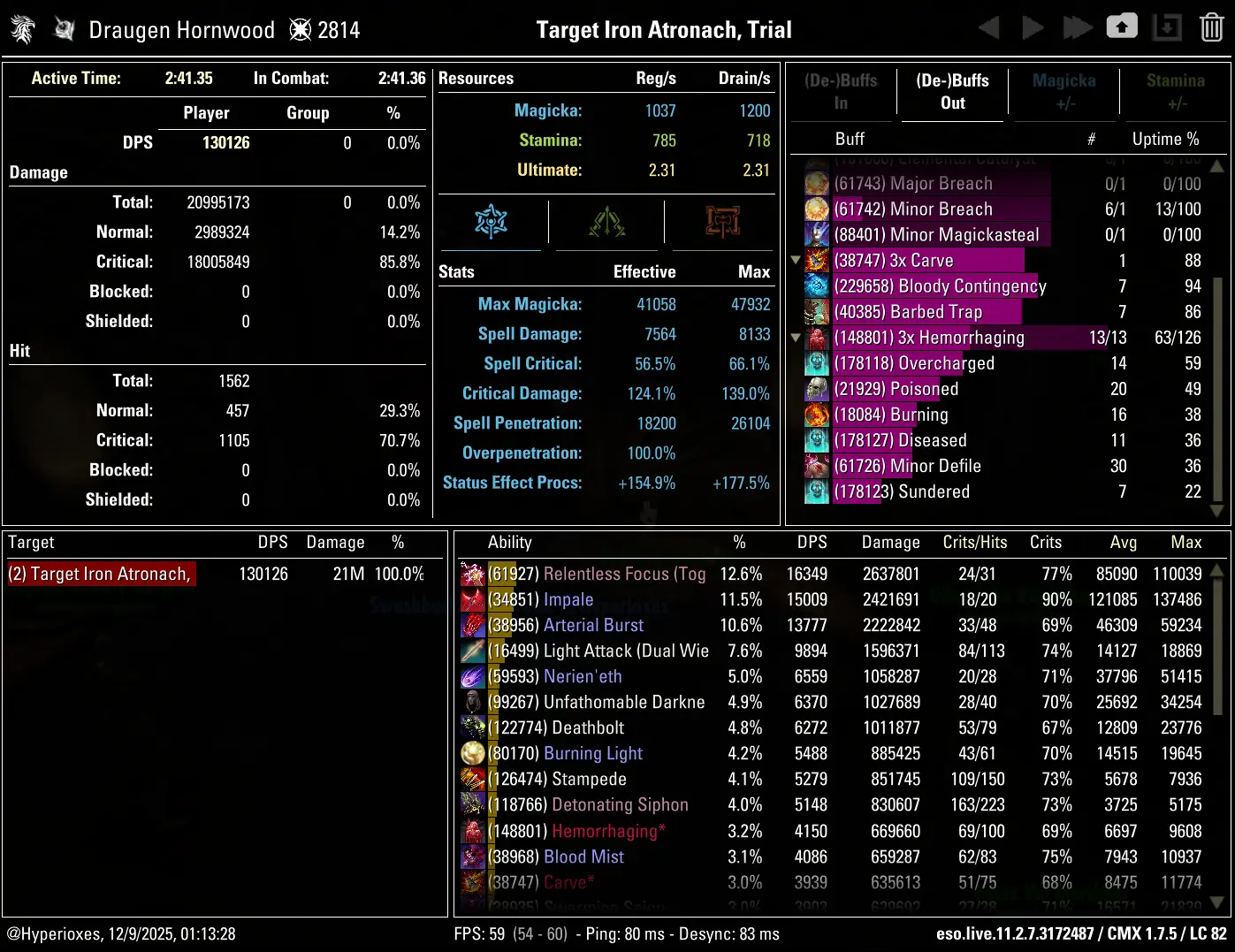Combat Metrics screenshot of the 130k parse