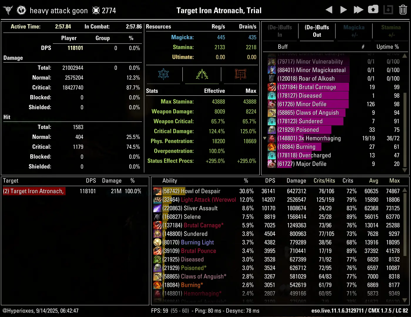 Pack Leader ultimate morph in order to keep up your Werewolf transformation and with this ultimate the DPS ceiling is 118k instead of 130k.