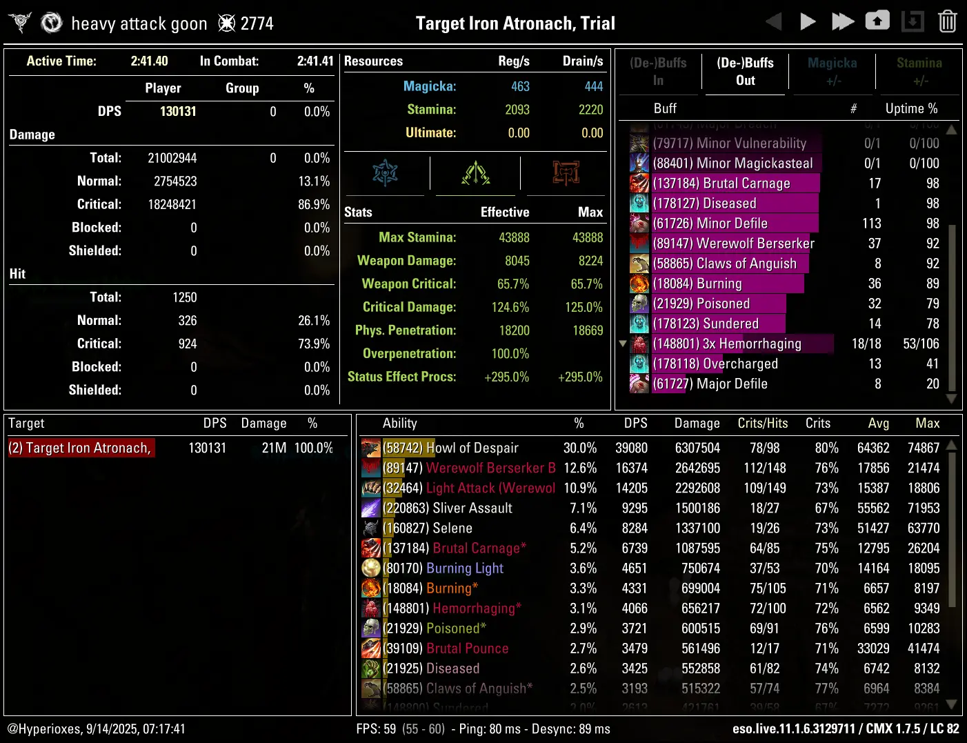 Combat Metrics screenshot of the 130k parse